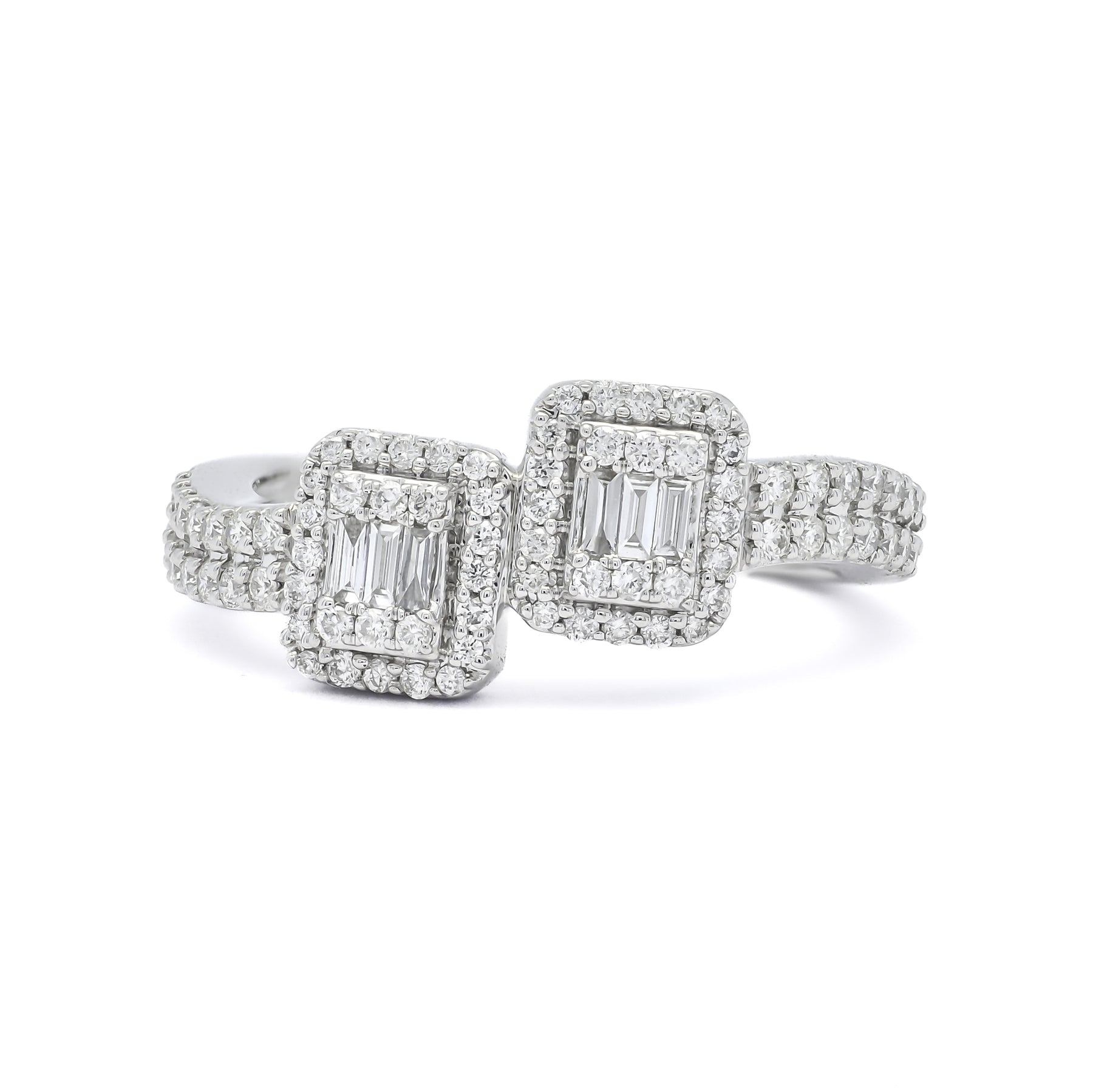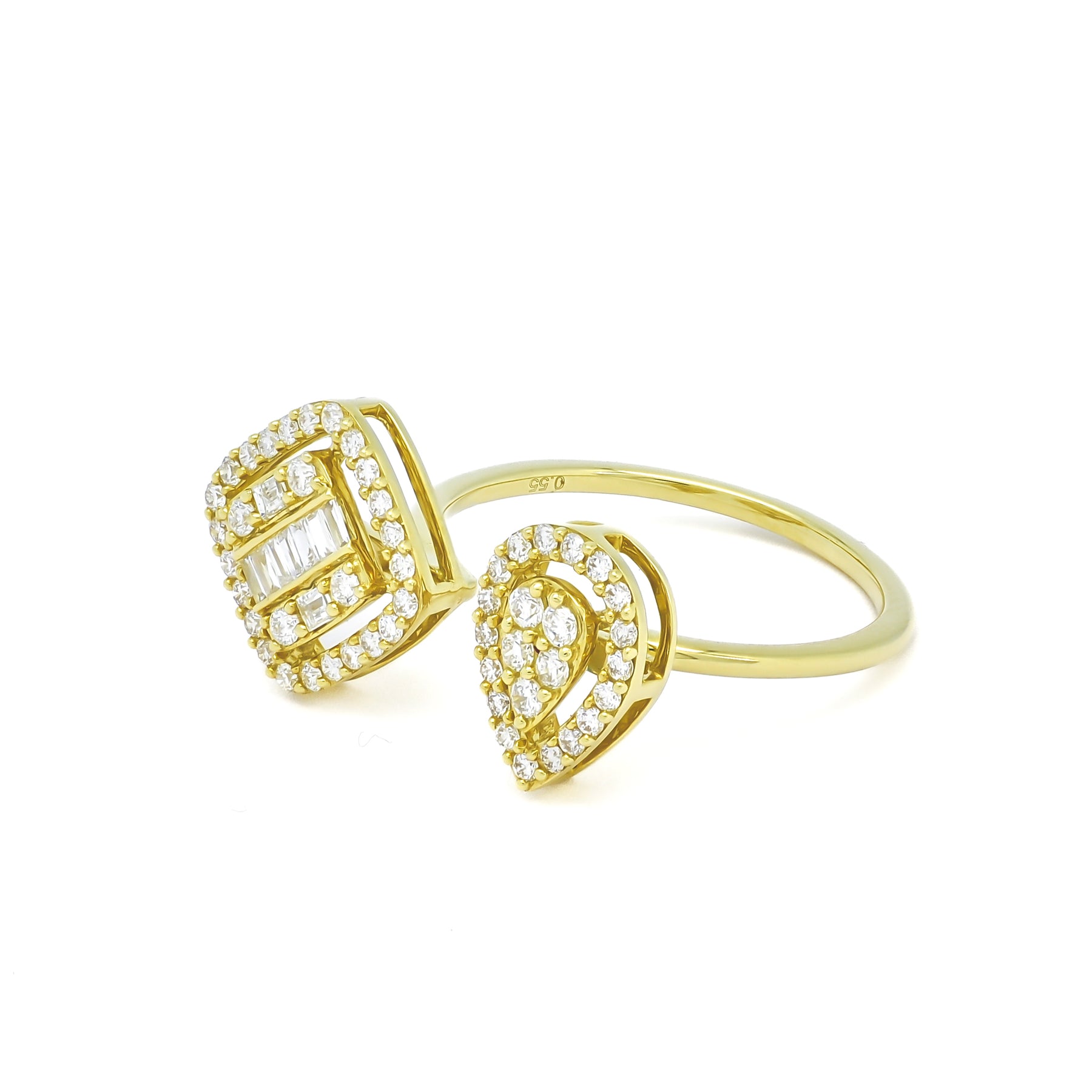 Elevate your style with this dazzling duo design ring, featuring an alluring cluster set alongside a stunning single solitaire diamond. Adorned with sparkling diamonds totaling 0.15 carats, this exquisite ring is crafted in 18 KT gold.