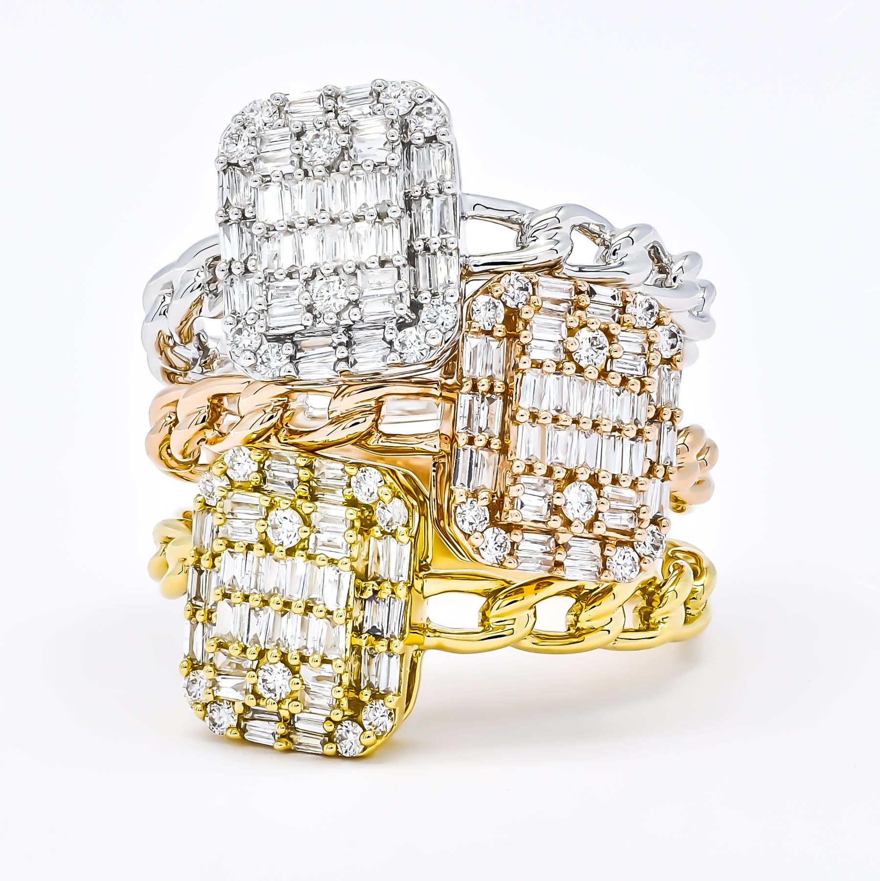 Each row of the ring is meticulously arranged to create a stunning visual effect, evoking a sense of opulence and grandeur. The Dome Shape design adds depth and dimension, elevating the ring's aesthetic to new heights of elegance.