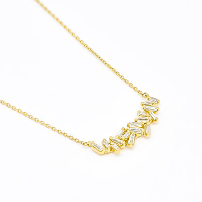 Experience the brilliance of our "Diamond Triplet" pendant necklace, where three captivating clusters of natural diamonds come together to form an enchanting focal point. Each cluster, boasting brilliant-cut diamonds with a total weight of 0.33 carats, showcases exceptional clarity and radiance, ensuring that every movement ignites a dazzling display of light.