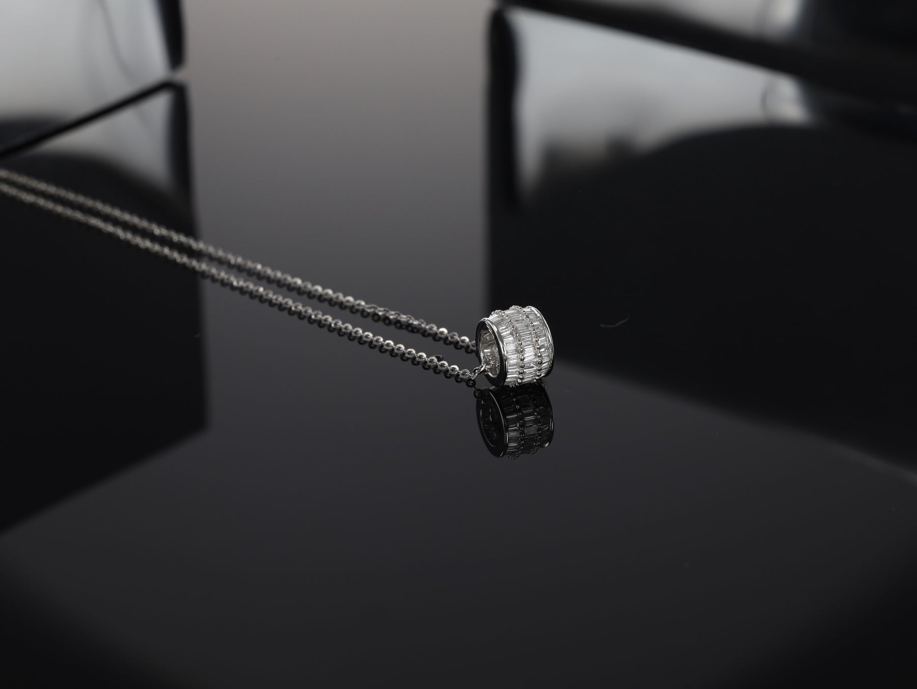 Suspended from an elegant 18KT white gold chain, this necklace epitomizes sophistication and refinement, adding a touch of luxury to any ensemble.